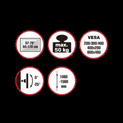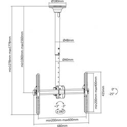 The PALLAS 70-6040T is a full-motion ceiling mount designed to offer the ultimate in versatility and universal compatibility. The ceiling plate is fixed only for flat ceiling application. It allows displays to tilt down and swivel around the pole without tools. Includes VESA plate to accommodate virtually any 37" – 70" flat panel TV or monitor up to 50kg. Features adjustable height for perfect TV positioning and a wire management channel to keep cables concealed and organized.