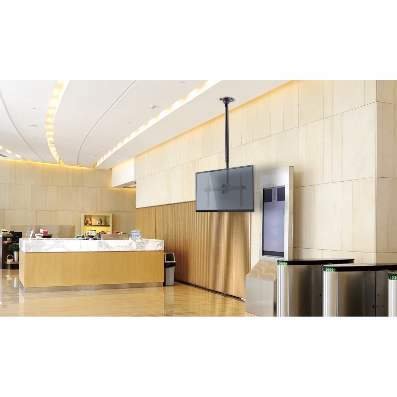 The PALLAS 70-6040T is a full-motion ceiling mount designed to offer the ultimate in versatility and universal compatibility. The ceiling plate is fixed only for flat ceiling application. It allows displays to tilt down and swivel around the pole without tools. Includes VESA plate to accommodate virtually any 37" – 70" flat panel TV or monitor up to 50kg. Features adjustable height for perfect TV positioning and a wire management channel to keep cables concealed and organized.