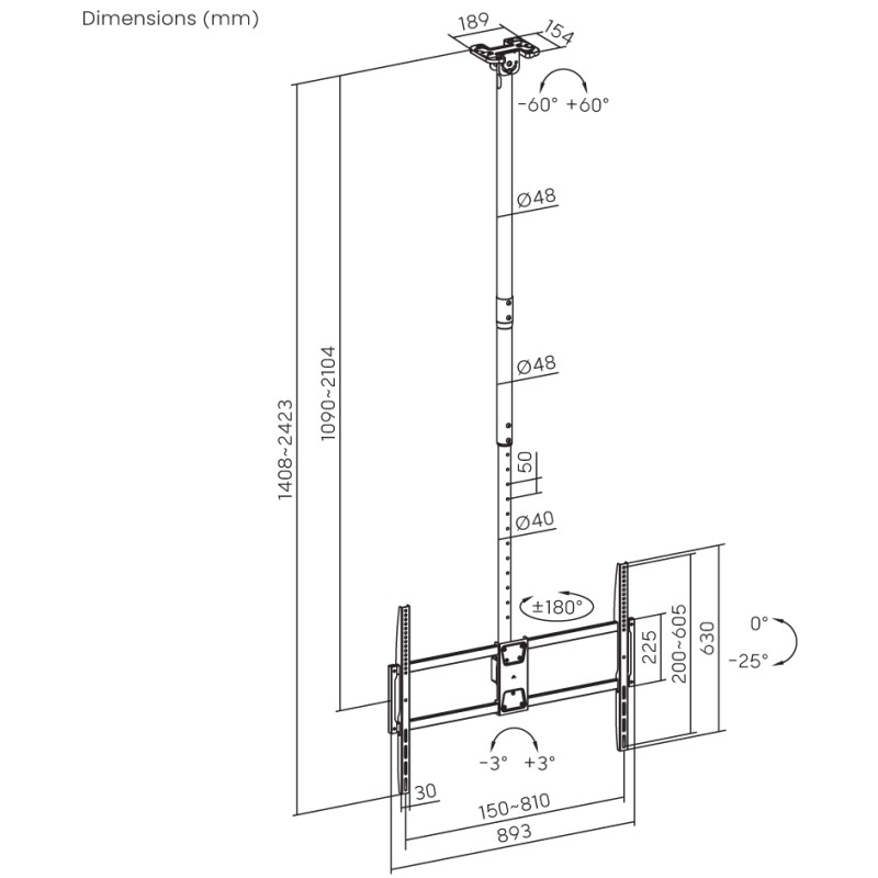 The PALLAS 100-8060T is a super heavy-duty model made for large TVs. It will hold a screen up to 100”/ 80kg. High-quality material combined with a strengthened structure makes for an extraordinary supporting ability. In addition, they are suitable for flat or pitched ceiling installation, and have telescopic poles for different height level needs, offering maximum compatibility and flexible application. Besides, the free tilting & swiveling VESA ensures the optimal viewing experience for the viewers.