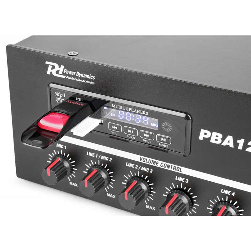 This amplifier with excellent performance and reliability is particularly suitable for a wide range of small and medium-sized installations. The amplifier is equipped with USB / SD ports for MP3 playback and has an MP3 control panel. It is equipped with a built-in equalizer, 3 microphone inputs and 2 stereo line inputs. Speaker outputs have options for 4, 8 and 16 ohms as well as 70V and 100V
